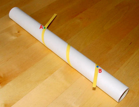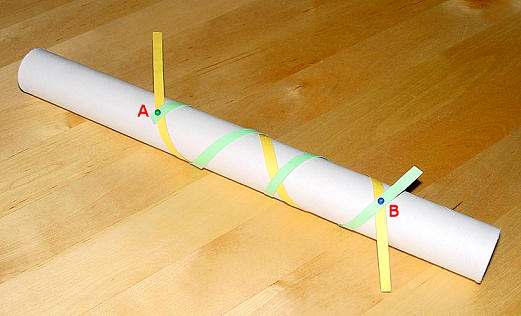 Nella fotografia seguente vediamo una linea geodetica per i punti A e B sulla superficie di un cilindro.