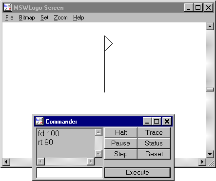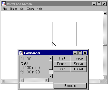 Un'ultima cosa: come si fa ad uscire dall'ambiente MSWLogo? Avete due possibilità: selezionare l'opzione "Exit" del menu "File" della finestra principale oppure dare in modo diretto, nel campo di input della finestra commander, l'istruzione bye.
