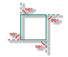Vi rendete conto che questo blocco di istruzioni rappresenta una descrizione operativa del quadrato. Per poter disegnare un quadrato con il Logo, l'allievo deve sapere quali proprietà caratterizzano questa figura. Deve rendersi conto che gli angoli sono tutti retti (la rotazione della tartaruga è sempre di 90°) e i lati tutti uguali (l'avanzamento è sempre di 100 passi). Inoltre la regolarità della figura appare nella regolarità che il blocco di istruzioni presenta: ci sono due istruzioni che si ripetono quattro volte. Tenete ben presente che gli angoli di rotazione della tartaruga sono angoli esterni come vedete nella figura a fianco.