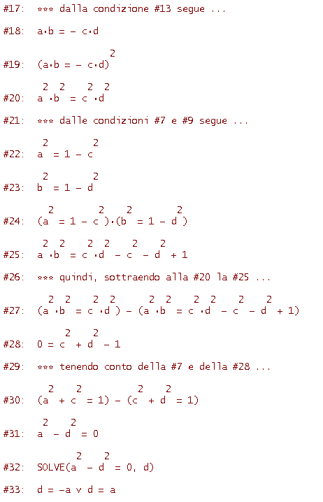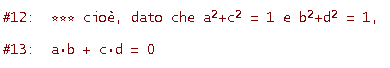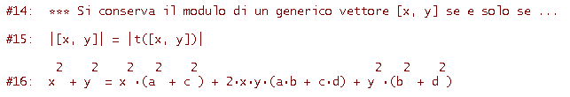 Osserva che l'equazione della riga #16, ottenuta semplificando la #15, è verificata per ogni x e y essendo a2 + c2 = 1, b2 + d2 = 1 e ab + cd = 0.