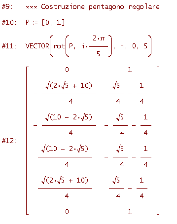 Tracciando la rappresentazione grafica della riga #12 (semplificazione della #11) ottieni il pentagono regolare della figura seguente