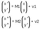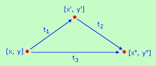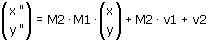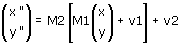 Come sai, la trasformazione t3 che porta [x, y] in [x", y"] si chiama prodotto o composizione delle due trasformazioni t2 e t1 e si scrive