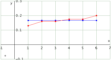 Qui vedi invece il solito grafico della distribuzione di probabilità assieme al grafico delle frequenze relative avendo impostato a 5000 il numero delle valutazioni di X. Come vedi i due grafici sono quasi sovrapponibili.
