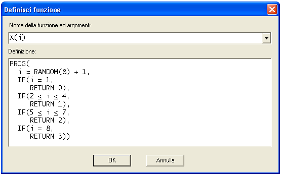 In tal modo viene rispettata la distribuzione di probabilità di X. Ecco come digiterai il programma (opzione Crea - Definisci funzione)