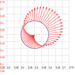 - Nuova opzione: campo vettoriale V(x, y) lungo una curva parametrica con la possibilità di tracciare solo la componente tangenziale o solo la componente ortogonale alla curva.