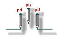 A questo scopo abbiamo utilizzato l'istruzione pu (pen up, penna su) che impedisce alla tartaruga di lasciare la traccia durante i suoi spostamenti. L'istruzione pd (pen down, penna giù) rimette poi le cose a posto, ripristinando la traccia. Allora il frammento della procedura precedente