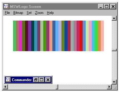 L'MSWLogo è in grado di gestire un numero di colori pari a 2563=16777216. Ogni colore viene individuato mediante una lista di tre numeri interi: il primo numero della lista è la componente rossa, il secondo la componente verde, il terzo la componente blu. Ciascuna componente può variare tra 0 e 255. La procedura seguente, ad esempio, traccia un quadrato in rosso.